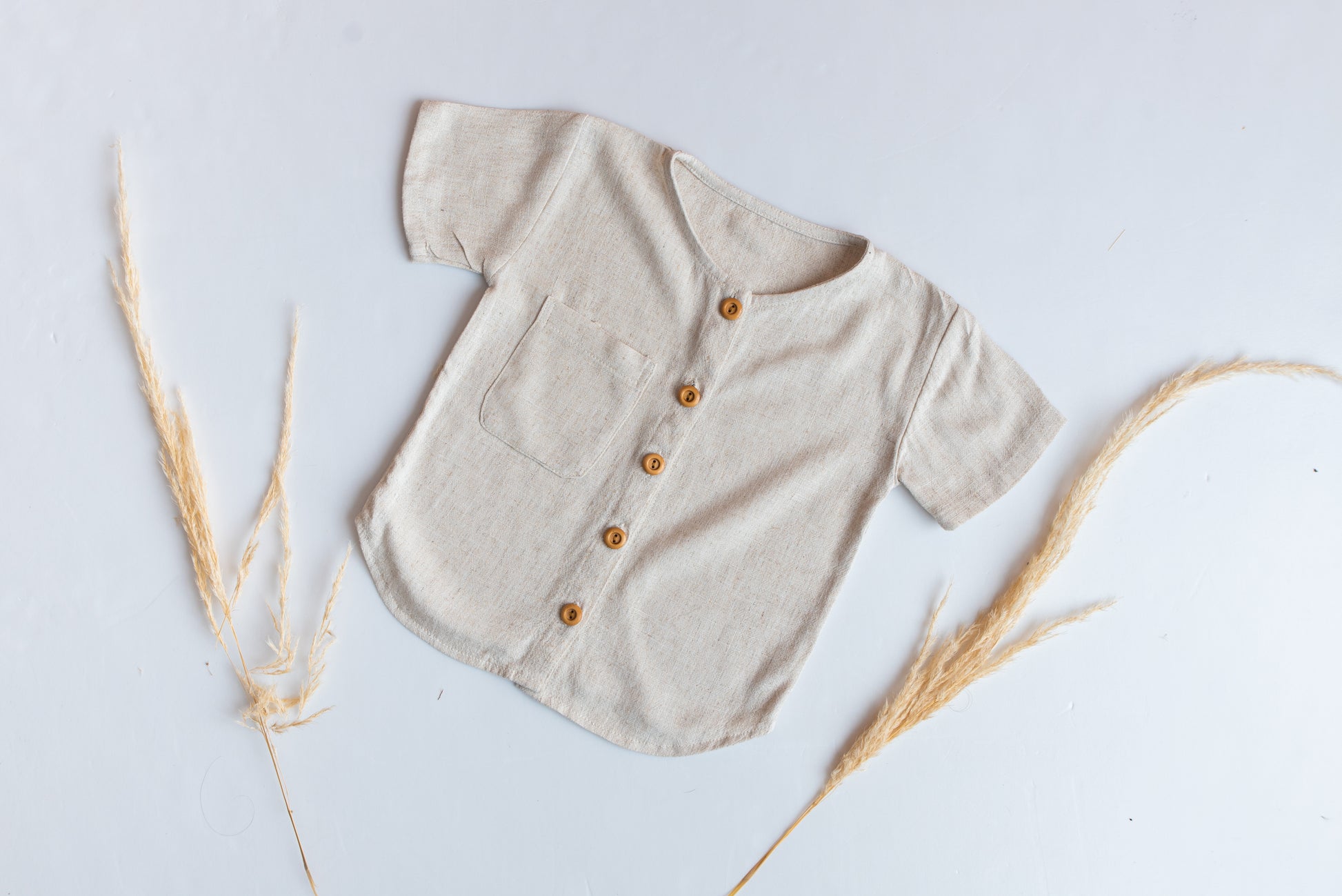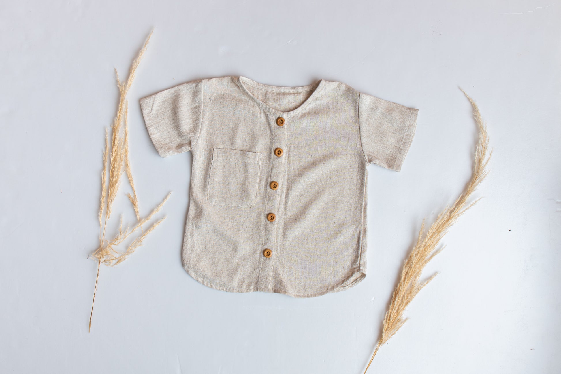 Cómodas y suaves, Camisa manga corta, cuello nerú y bolsillo camisero
